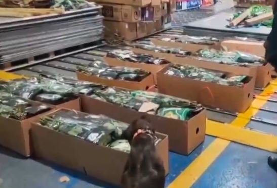 Con ayuda de perros entrenados, lograron detectar que había una sustancia impregnada en cuatro cajas con flores que tenían como destino Londres. Posteriormente pudieron confirmar que se trataba de cocaína.