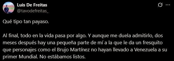 Por su parte, el capitán de la selección, Salomón Rondón, también reaccionó en la misma red social luego de quedar fuera de la convocatoria. Sin embargo, a diferencia del “Brujo”, el “Gladiador” optó por un tono más mesurado y autocrítico.
