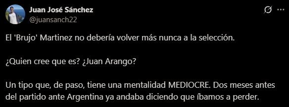 Las críticas en redes sociales no se hicieron esperar, especialmente hacia Martínez, a quien numerosos usuarios tildaron de “soberbio” y “poco profesional”. También recordaron su actitud durante las Eliminatorias al Mundial 2026, en las que la Vinotinto terminó fuera del repechaje tras ser goleada 3-6 por Colombia y no lograr los resultados esperados en partidos clave.